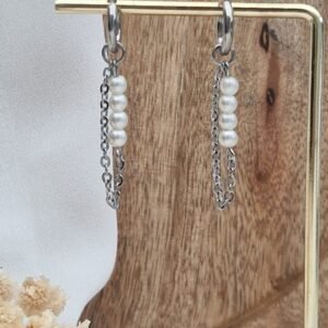 Boucles d’oreilles pendantes Perles en acier inoxydable – Bijou élégant sans nickel