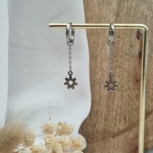 Boucles d’oreilles pendantes Fleurs en acier inoxydable – Bijou délicat sans nickel