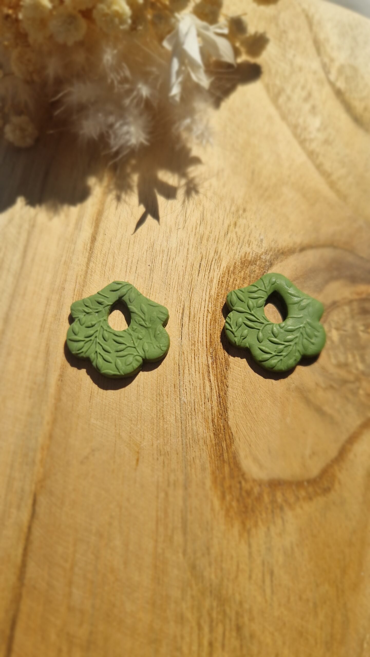 • Pampilles en forme de fleur vert olive