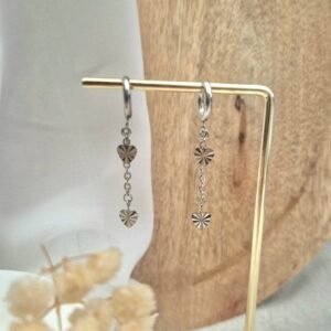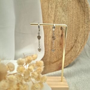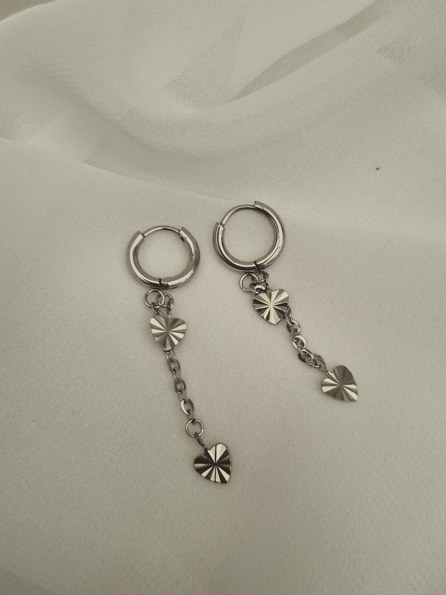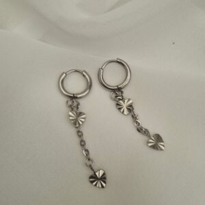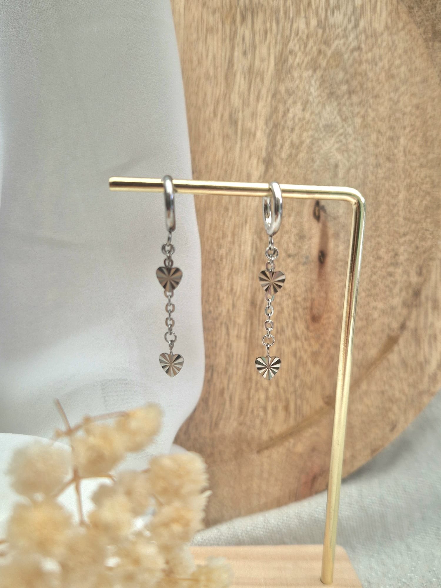 Boucles d’oreilles pendantes Cœurs en acier inoxydable – Bijou délicat sans nickel