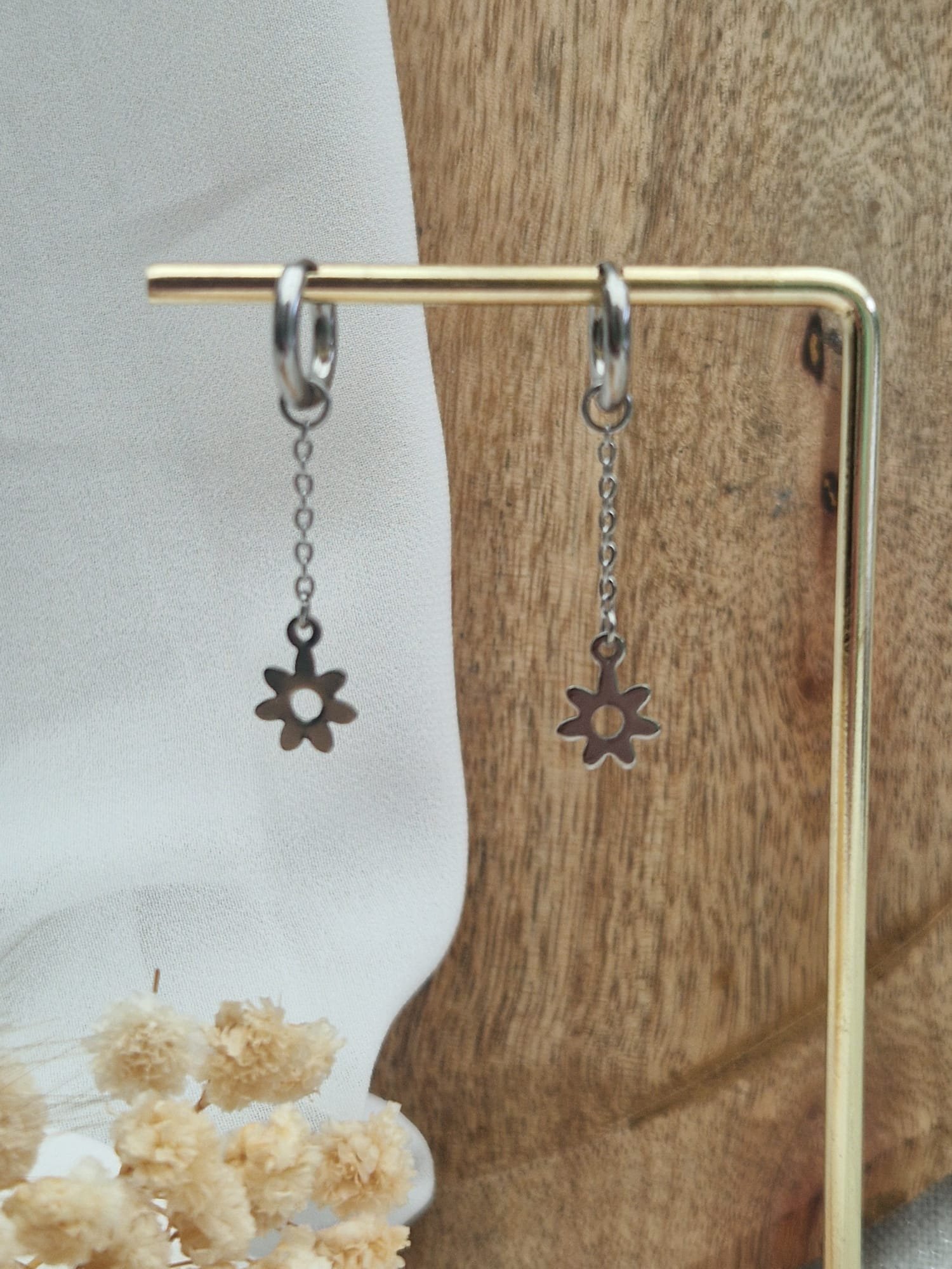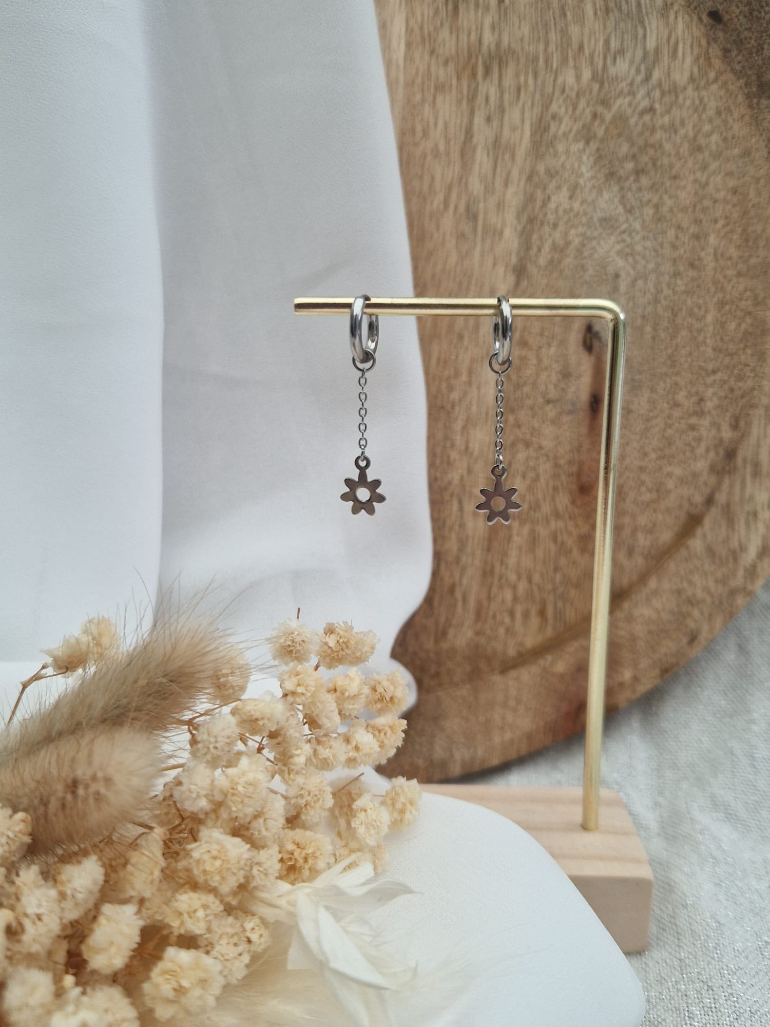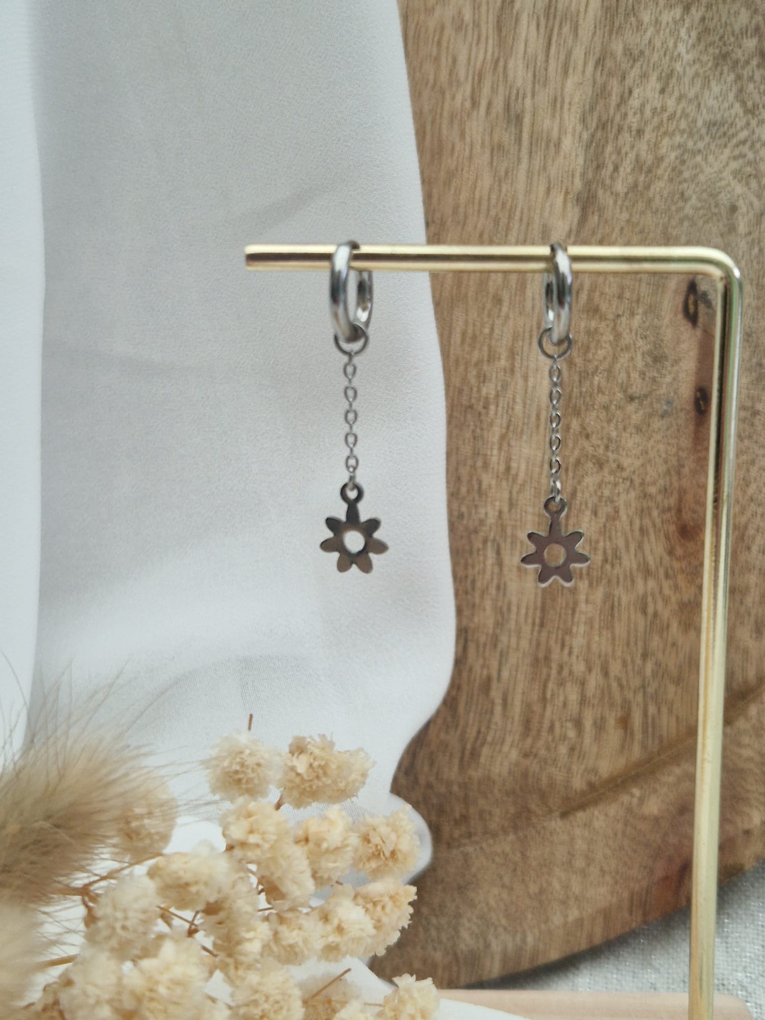 Boucles d’oreilles pendantes Fleurs en acier inoxydable – Bijou délicat sans nickel