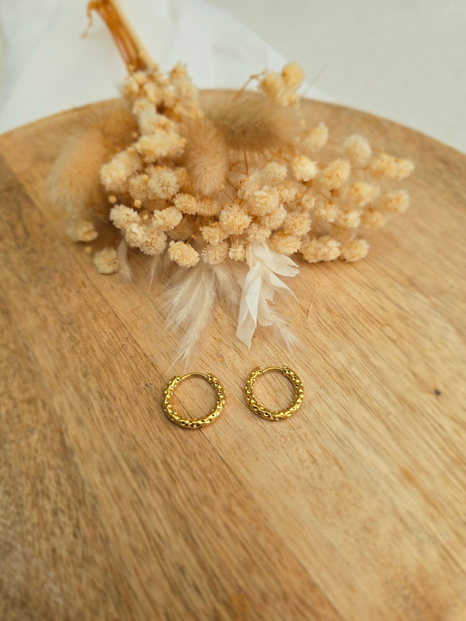 Ces créoles martelées dorées en acier inoxydable séduisent par leur texture irrégulière et leur éclat chaleureux. Le martelage apporte du relief et capte la lumière avec finesse. D’un diamètre de 16 mm, elles offrent un format discret mais lumineux, parfait pour un porté quotidien comme pour une occasion plus habillée. Conçues en acier inoxydable, elles sont résistantes, durables et adaptées à un usage quotidien. Leur finition dorée ajoute une touche chic et intemporelle.