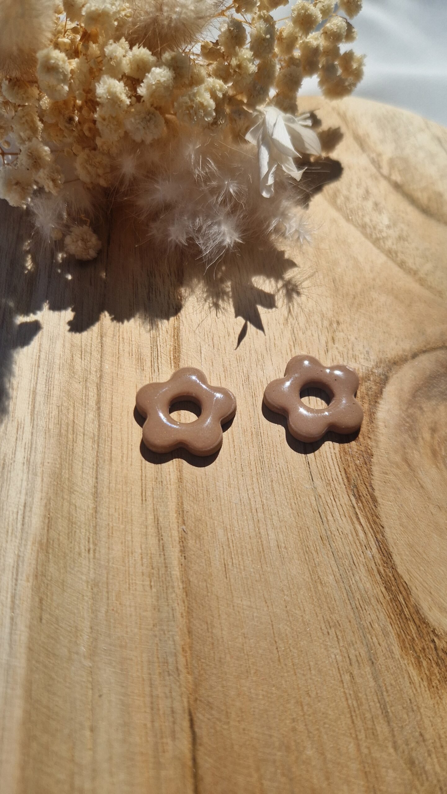 Les pampilles Léana sont de délicates fleurs en pâte Fimo, au design épuré et harmonieux, mettant en valeur des pétales finement dessinés. Leur surface lisse et brillante offre un rendu doux, naturel et élégant.