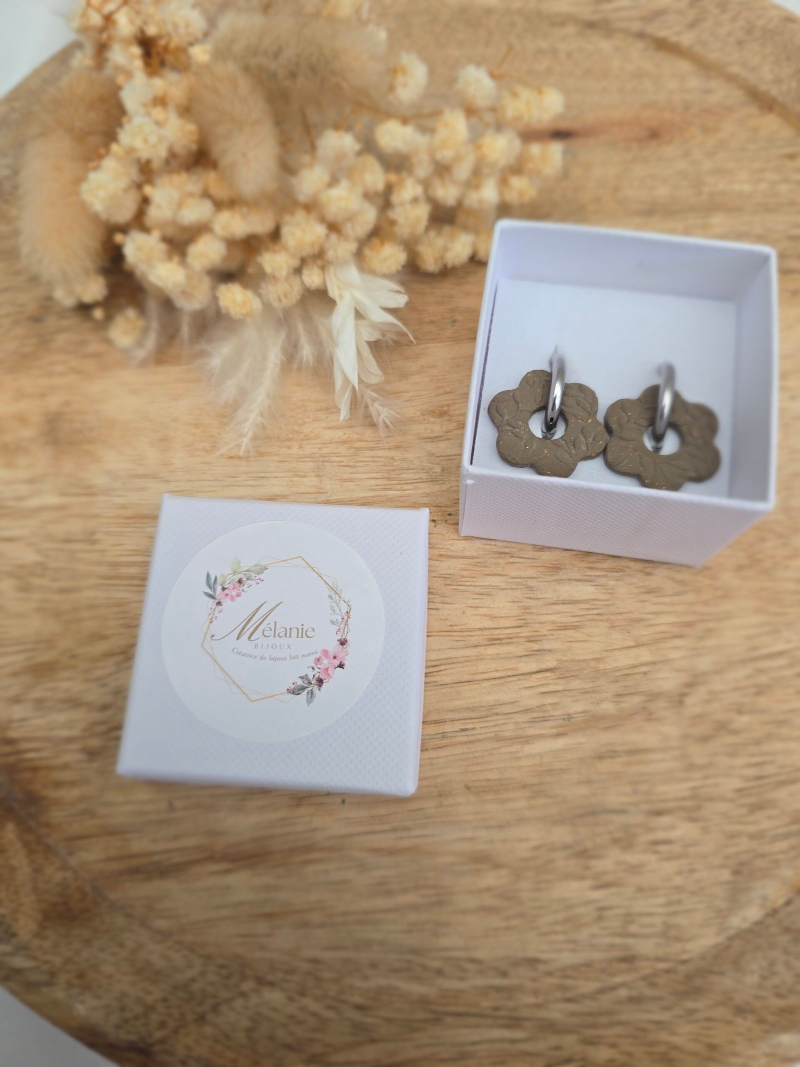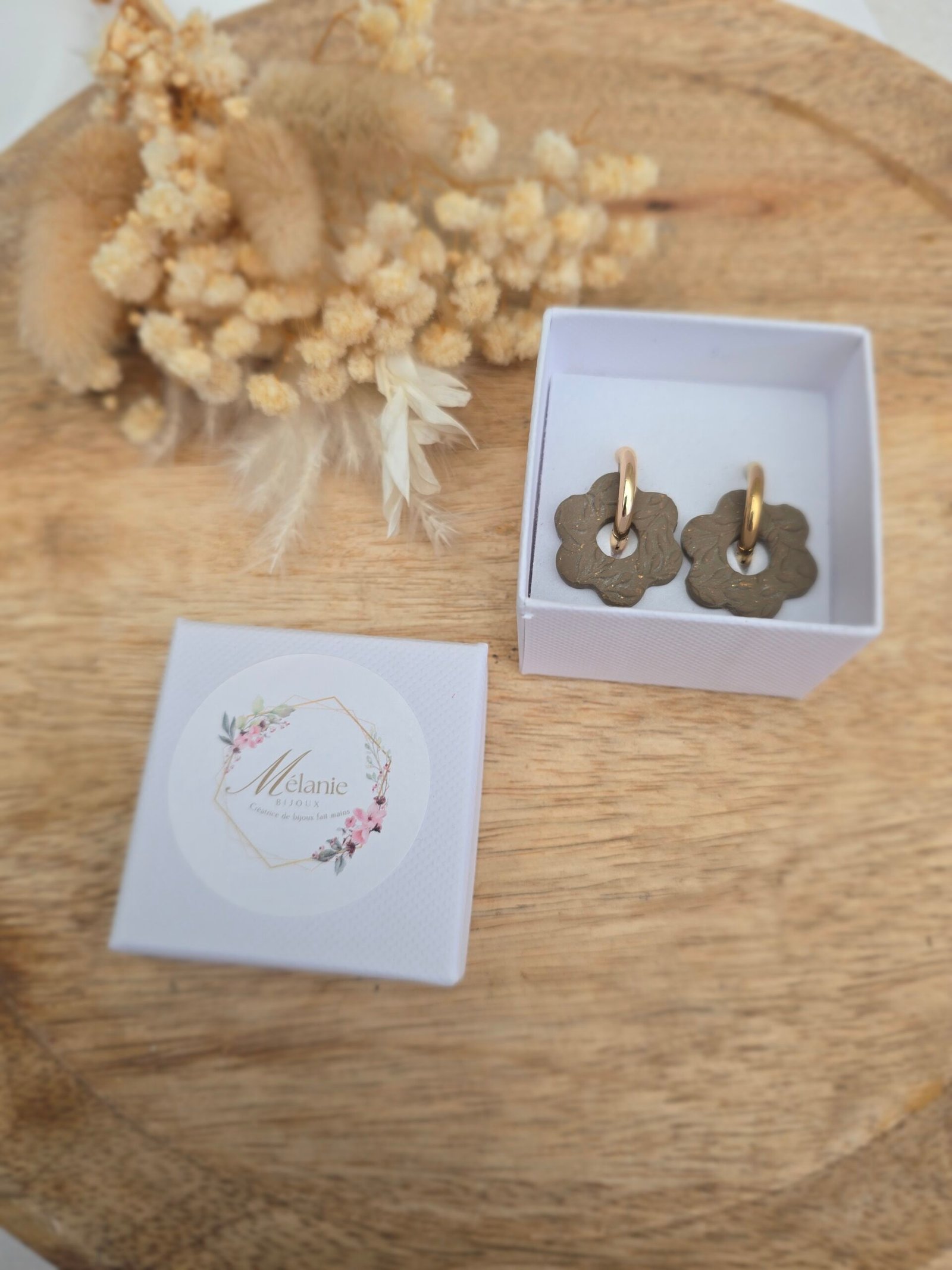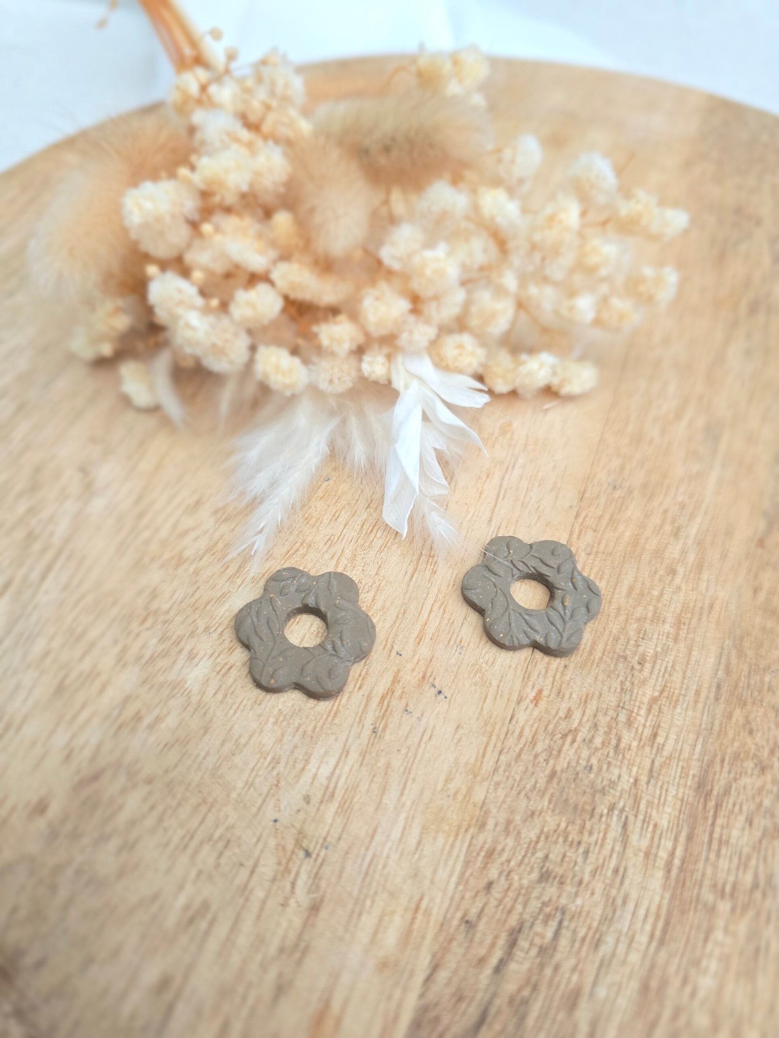 Les pampilles Léana sont de délicates fleurs en pâte Fimo, sublimées par une texture en relief inspirée du lierre, évoquant des feuilles entrelacées et des pétales finement sculptés. Leur surface finement texturée et organique offre un rendu naturel, chaleureux et sophistiqué, avec un effet tactile unique.