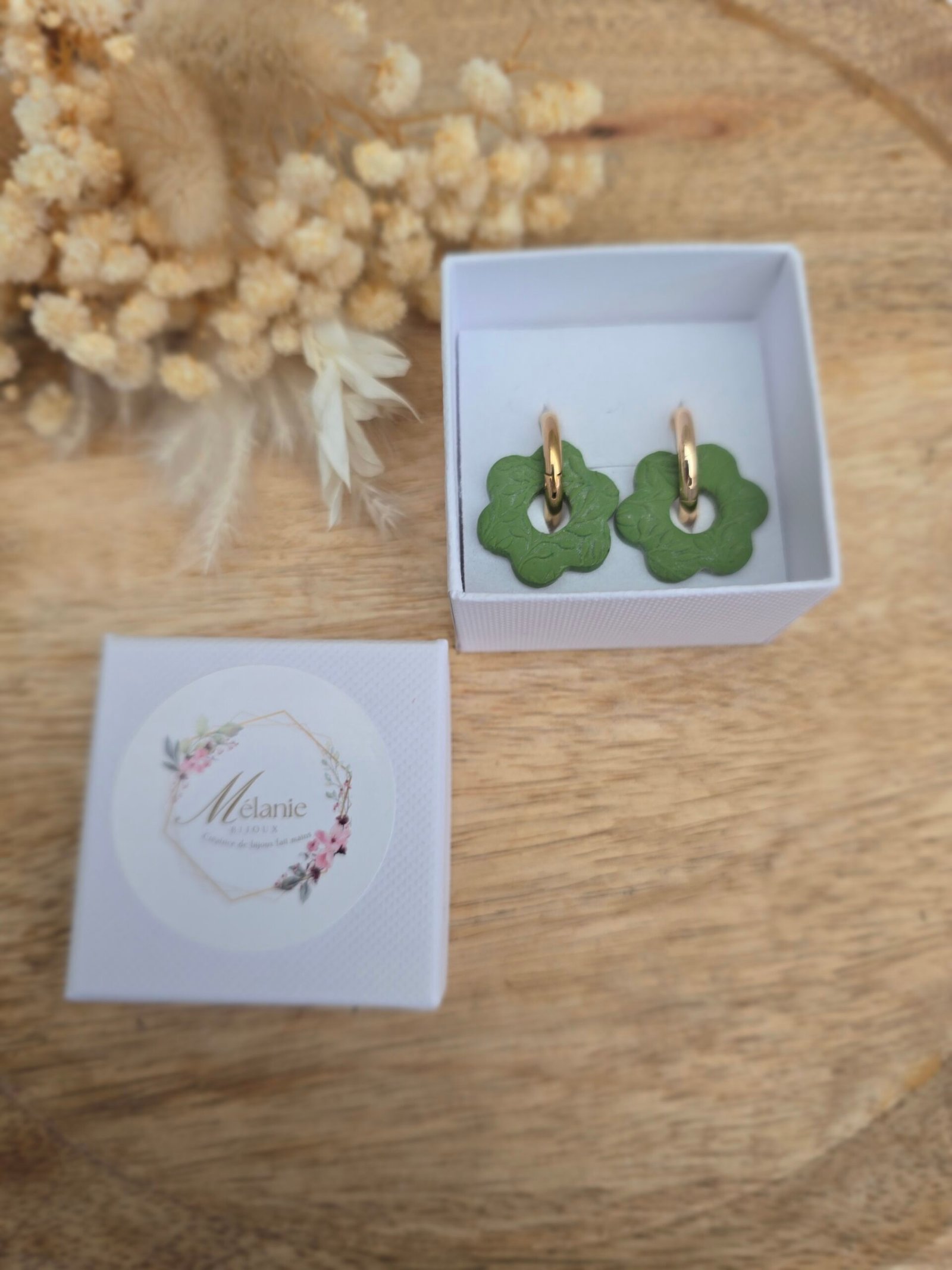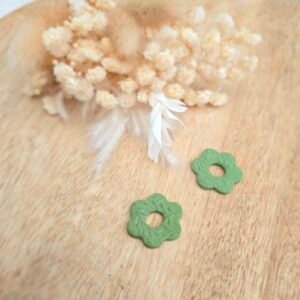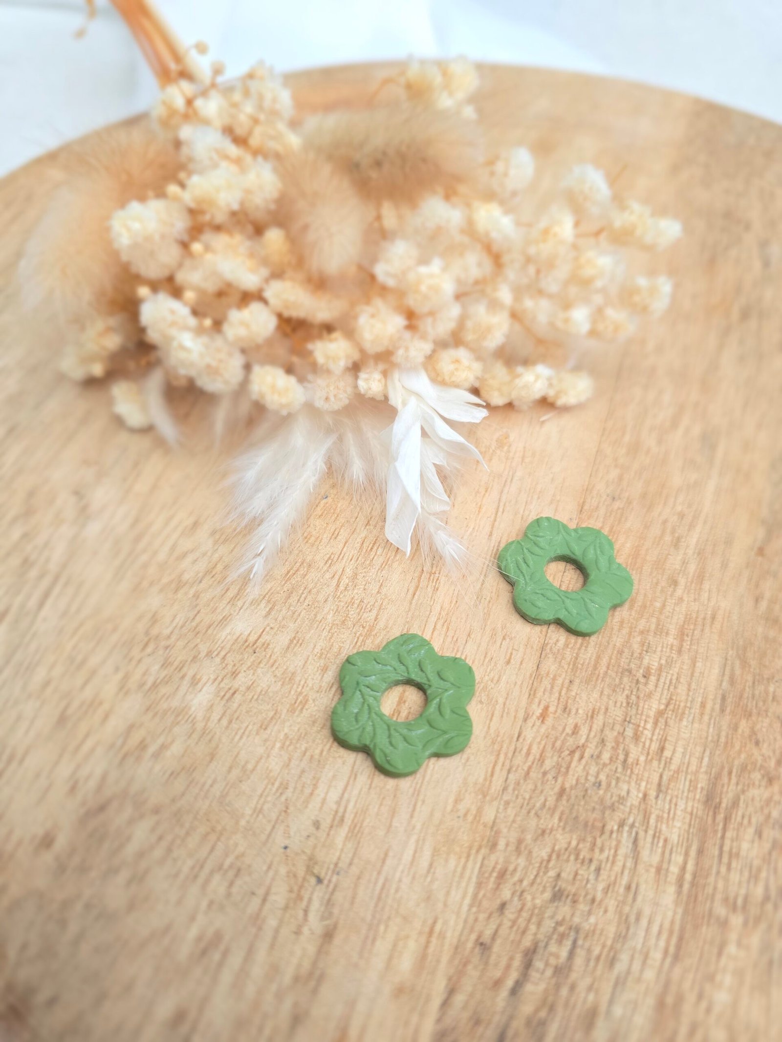 Les pampilles Léana sont de délicates fleurs en pâte Fimo, sublimées par une texture en relief inspirée du lierre, évoquant des feuilles entrelacées et des pétales finement sculptés. Leur surface texturée et organique offre un rendu naturel, chaleureux et sophistiqué, avec un effet tactile unique.