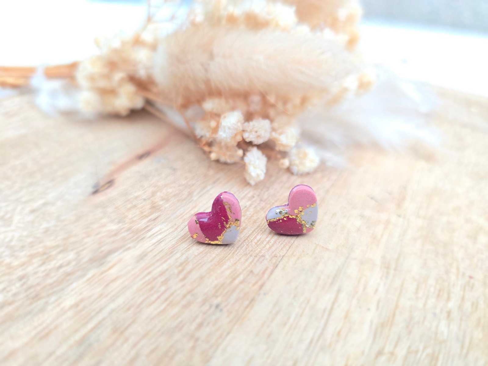 Ces boucles d’oreilles en forme de cœur se distinguent par leurs nuances de rose et de gris délicatement marbrées, sublimées par de fins éclats dorés. Leur design moderne et lumineux apporte une touche de douceur et d’élégance à votre style. Légères et agréables à porter, elles sont parfaites pour ajouter une note romantique et raffinée à toutes vos tenues.