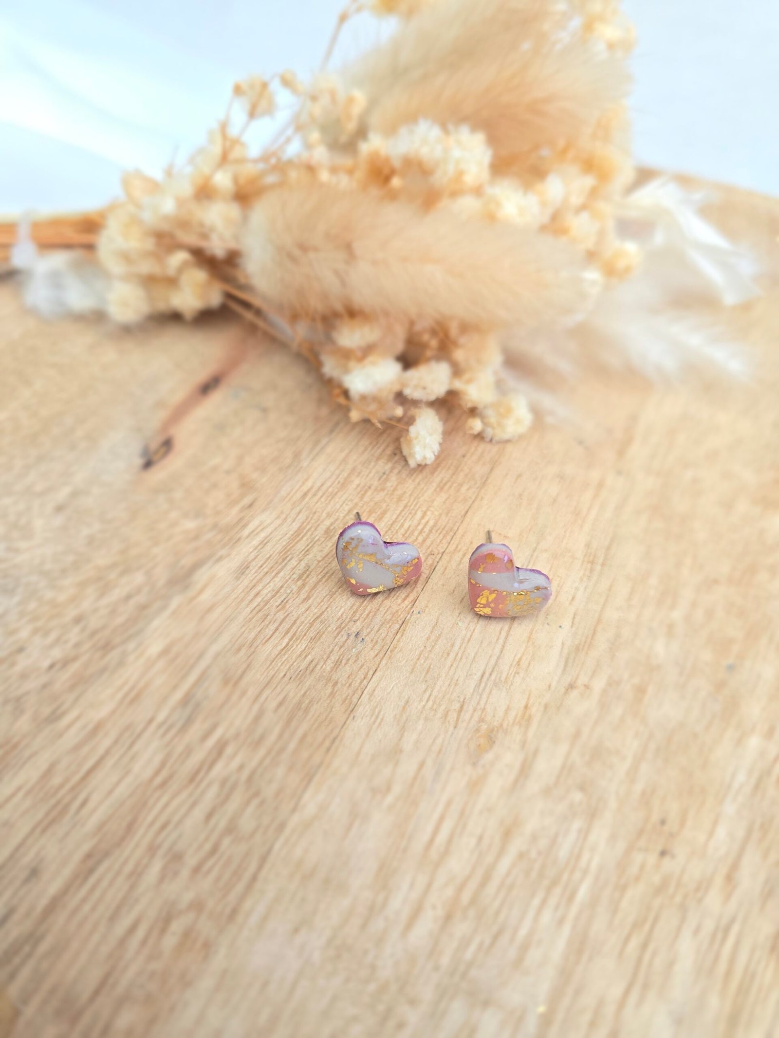 Ces boucles d’oreilles en forme de cœur allient délicatesse et modernité. Leur teinte mauve subtile, rehaussée d’éclats dorés, apporte une touche lumineuse et élégante à votre tenue. Légères et raffinées, elles sont parfaites pour un look féminin au quotidien comme pour une occasion spéciale. Chaque paire est conçue pour sublimer votre style avec douceur et originalité.