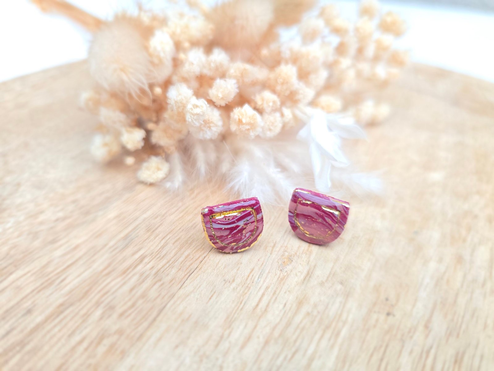 Ces boucles d’oreilles demi-lune aux nuances de rose marbré se distinguent par leurs délicates touches dorées qui captent la lumière. Leur forme douce et moderne apporte une élégance subtile et féminine à votre style. Légères et raffinées, elles sont idéales pour ajouter une note chic et originale à toutes vos tenues.